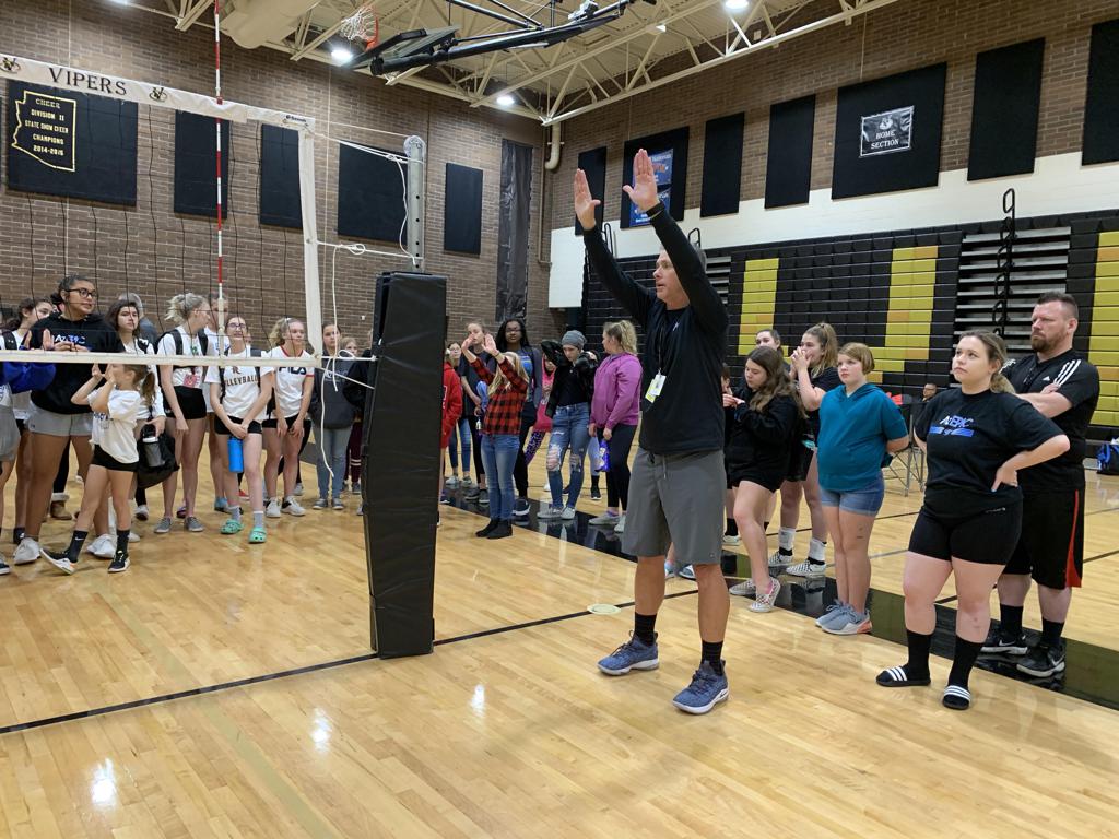 Athletes demonstrate how to call a foot fault at the AZ Epic Score and Ref Clinic